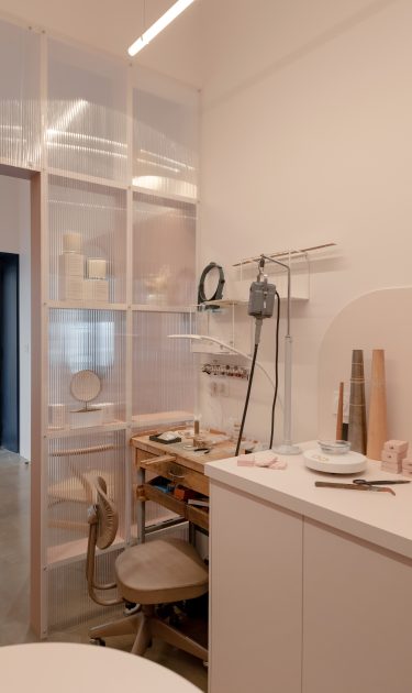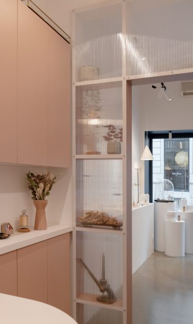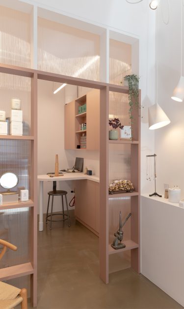 Ce projet de restructuration totale d'une petite boutique idéalement située dans la belle rue Auguste Comte de Lyon. L'objectif du projet était de créer un petite boutique-atelier à l'image de la sa créatrice : un écrin de douceur et de dentelle pour mettre en valeur son travail.