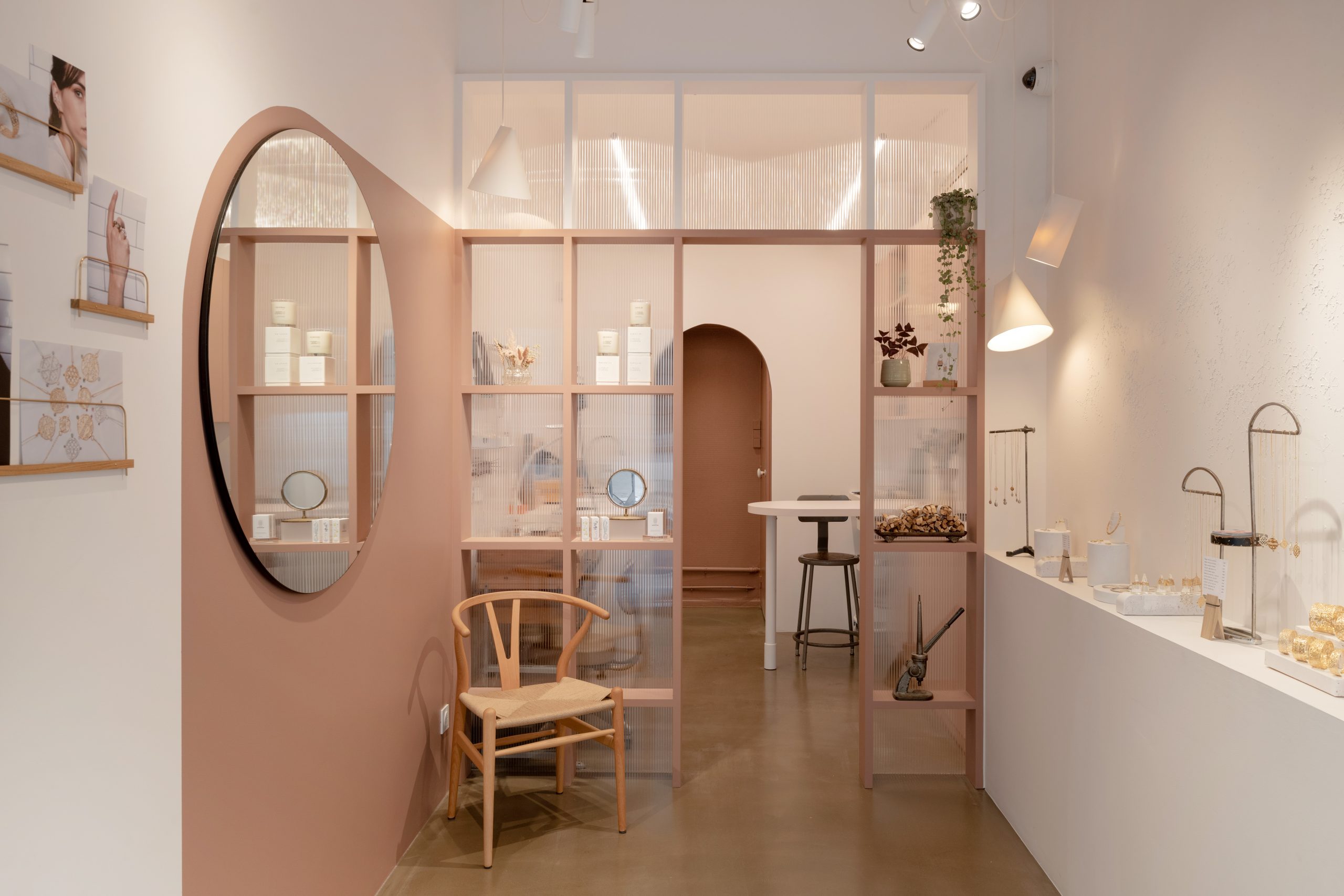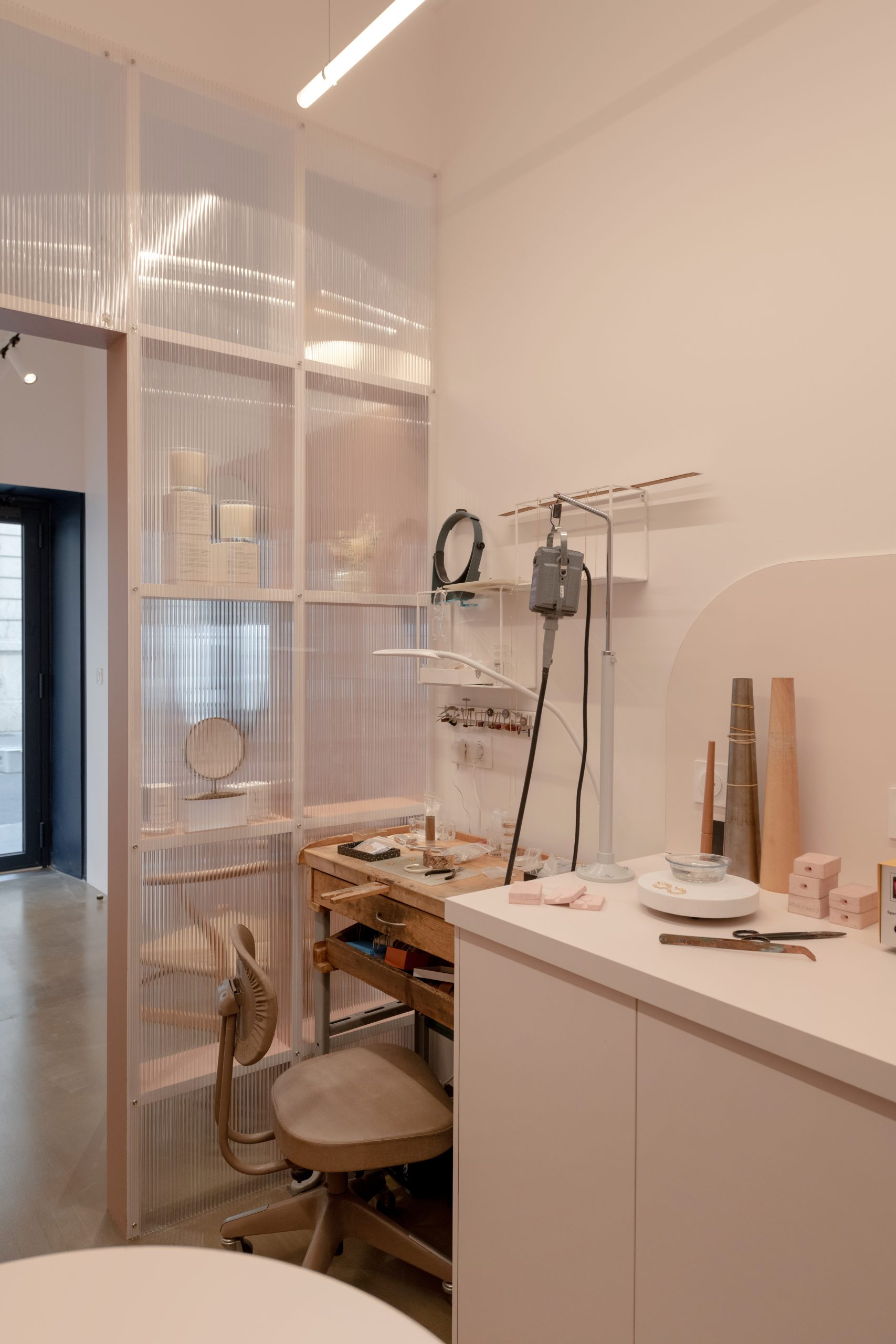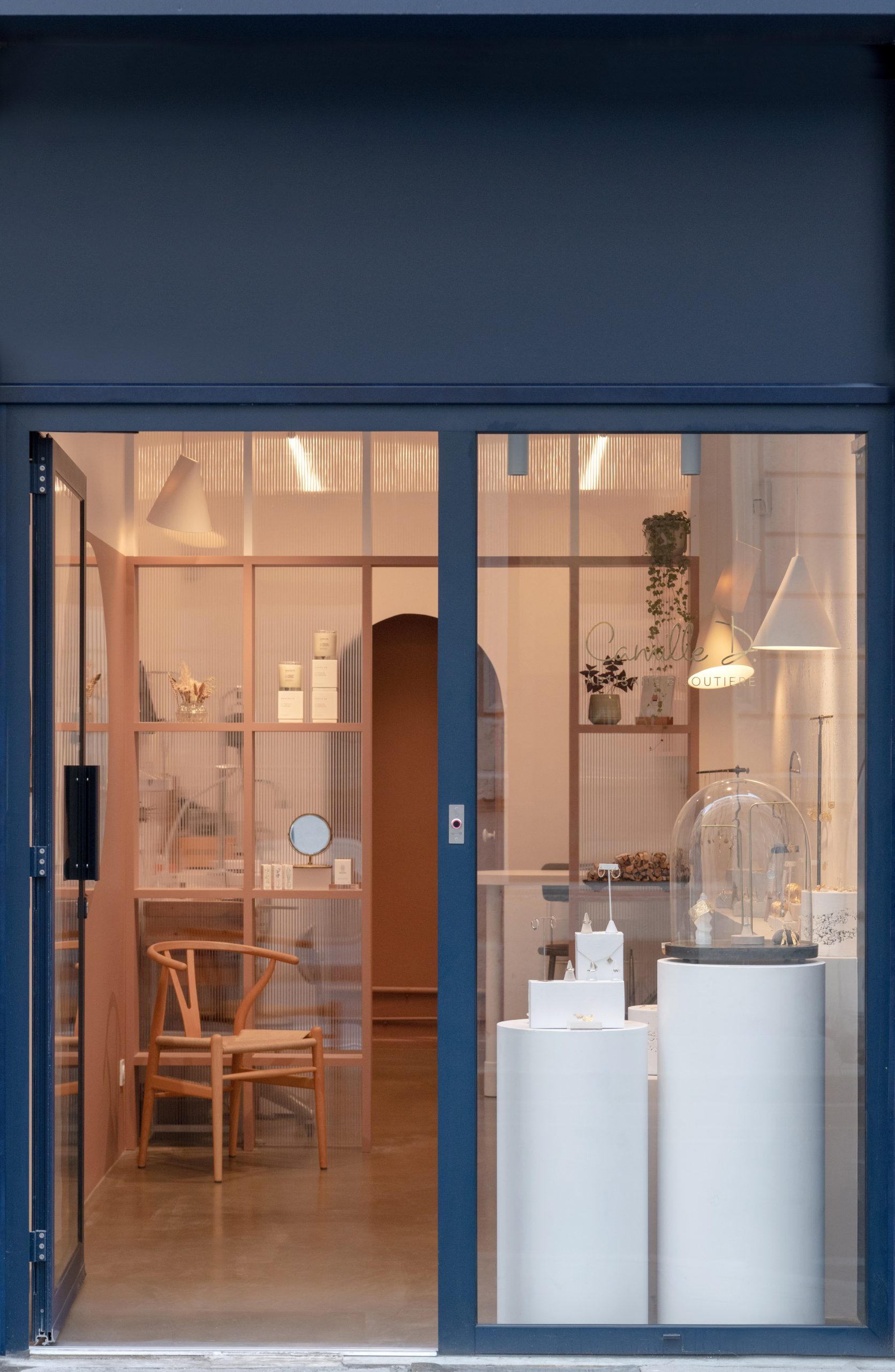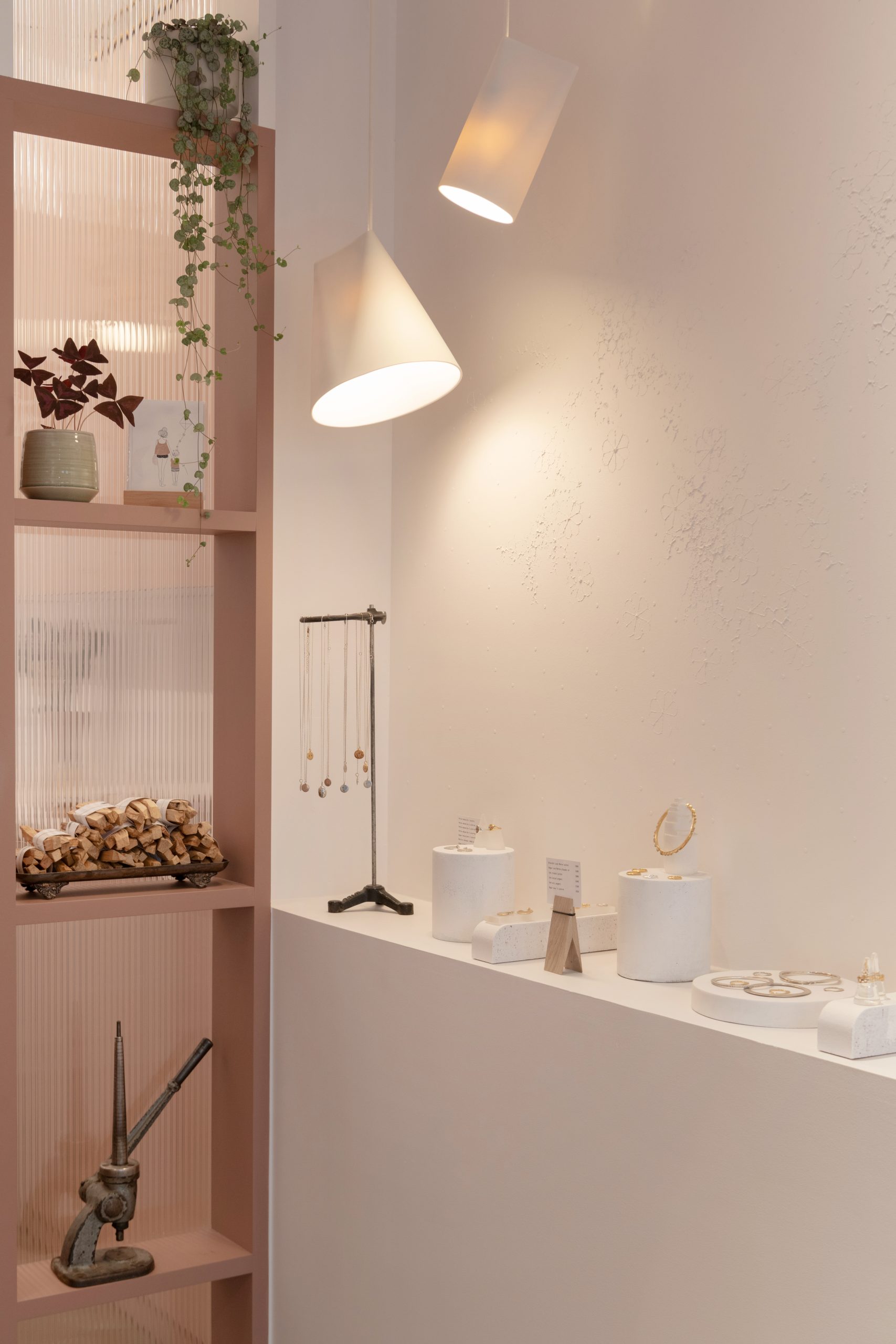 Ce projet de restructuration totale d'une petite boutique idéalement située dans la belle rue Auguste Comte de Lyon. L'objectif du projet était de créer un petite boutique-atelier à l'image de la sa créatrice : un écrin de douceur et de dentelle pour mettre en valeur son travail.