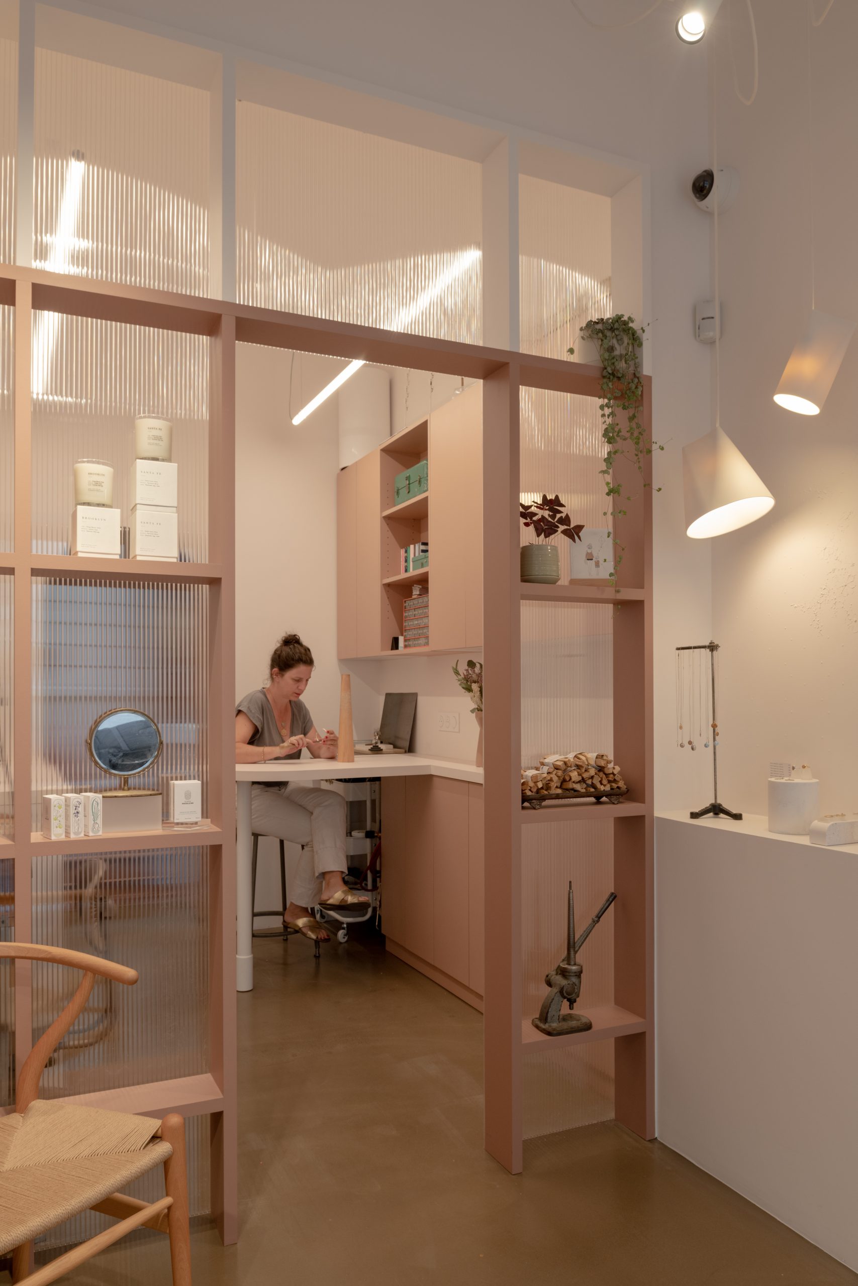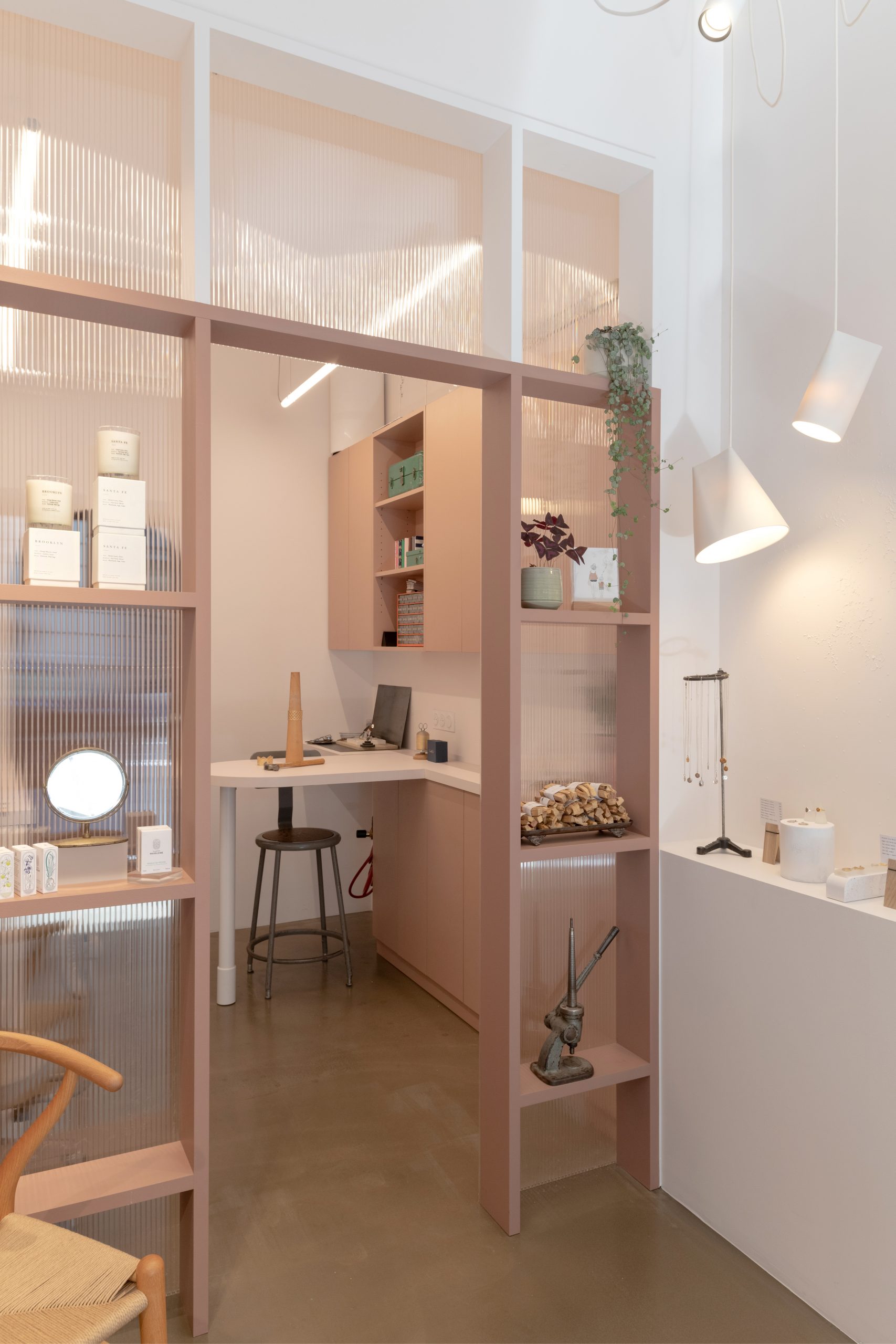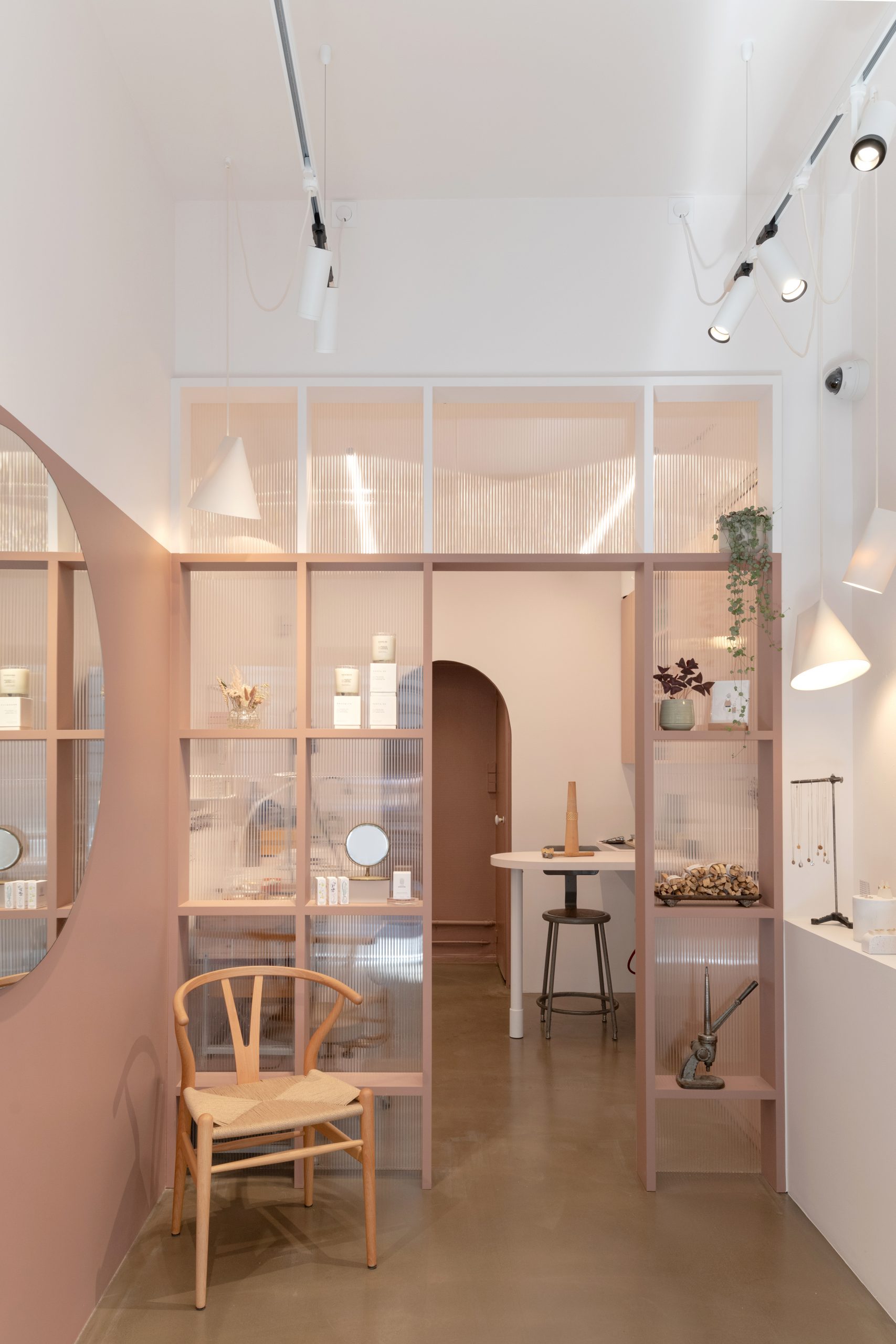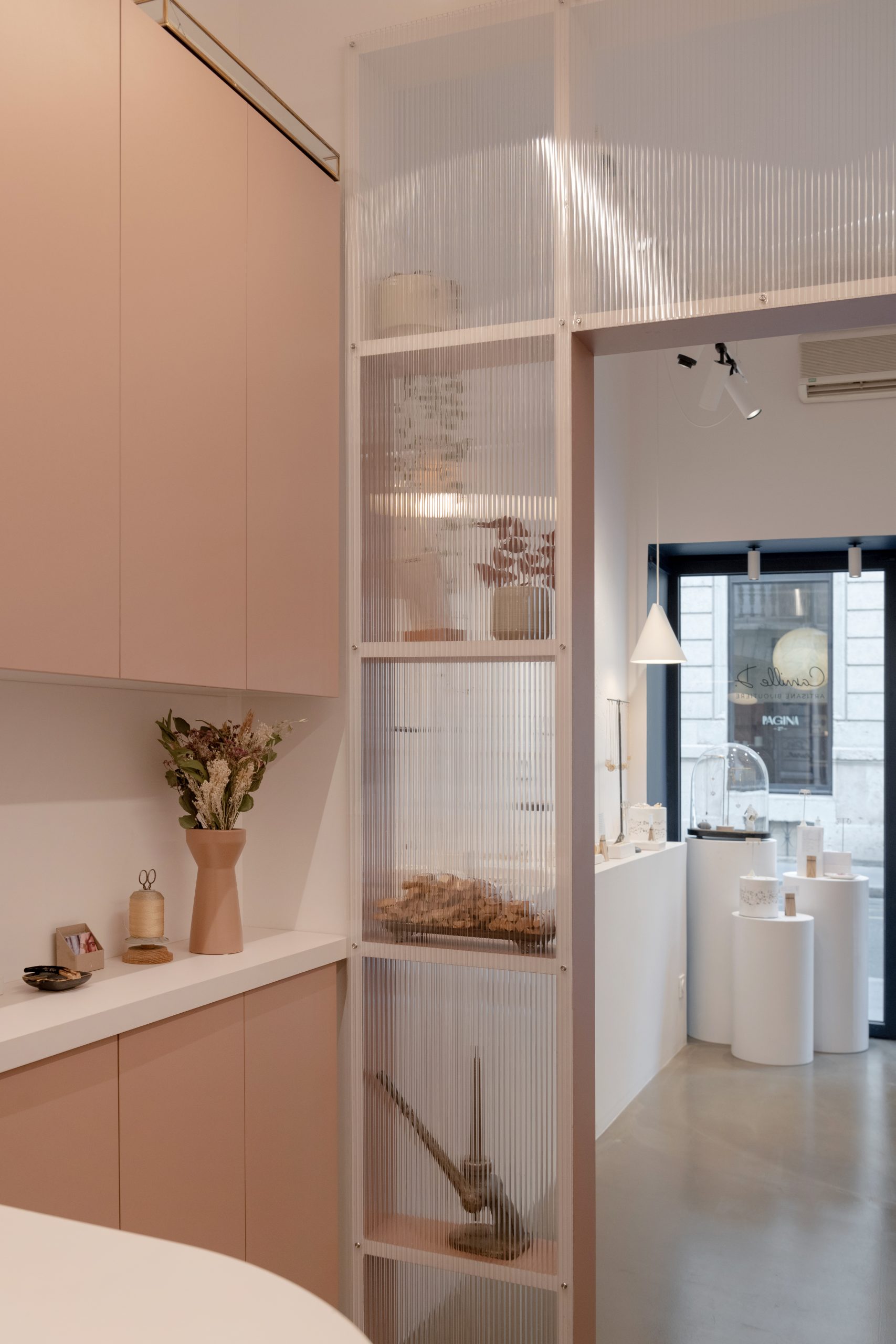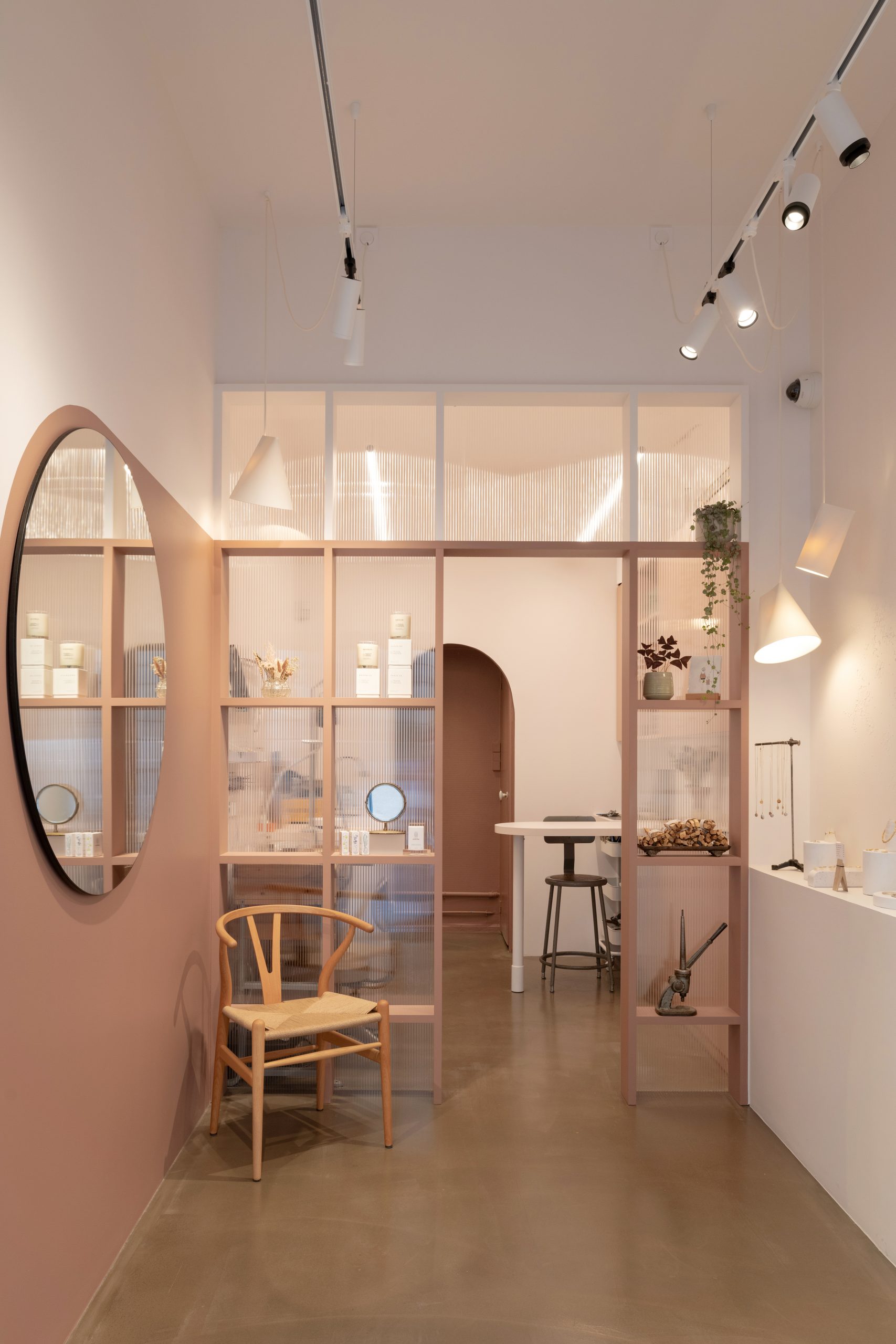 Ce projet de restructuration totale d'une petite boutique idéalement située dans la belle rue Auguste Comte de Lyon. L'objectif du projet était de créer un petite boutique-atelier à l'image de la sa créatrice : un écrin de douceur et de dentelle pour mettre en valeur son travail.