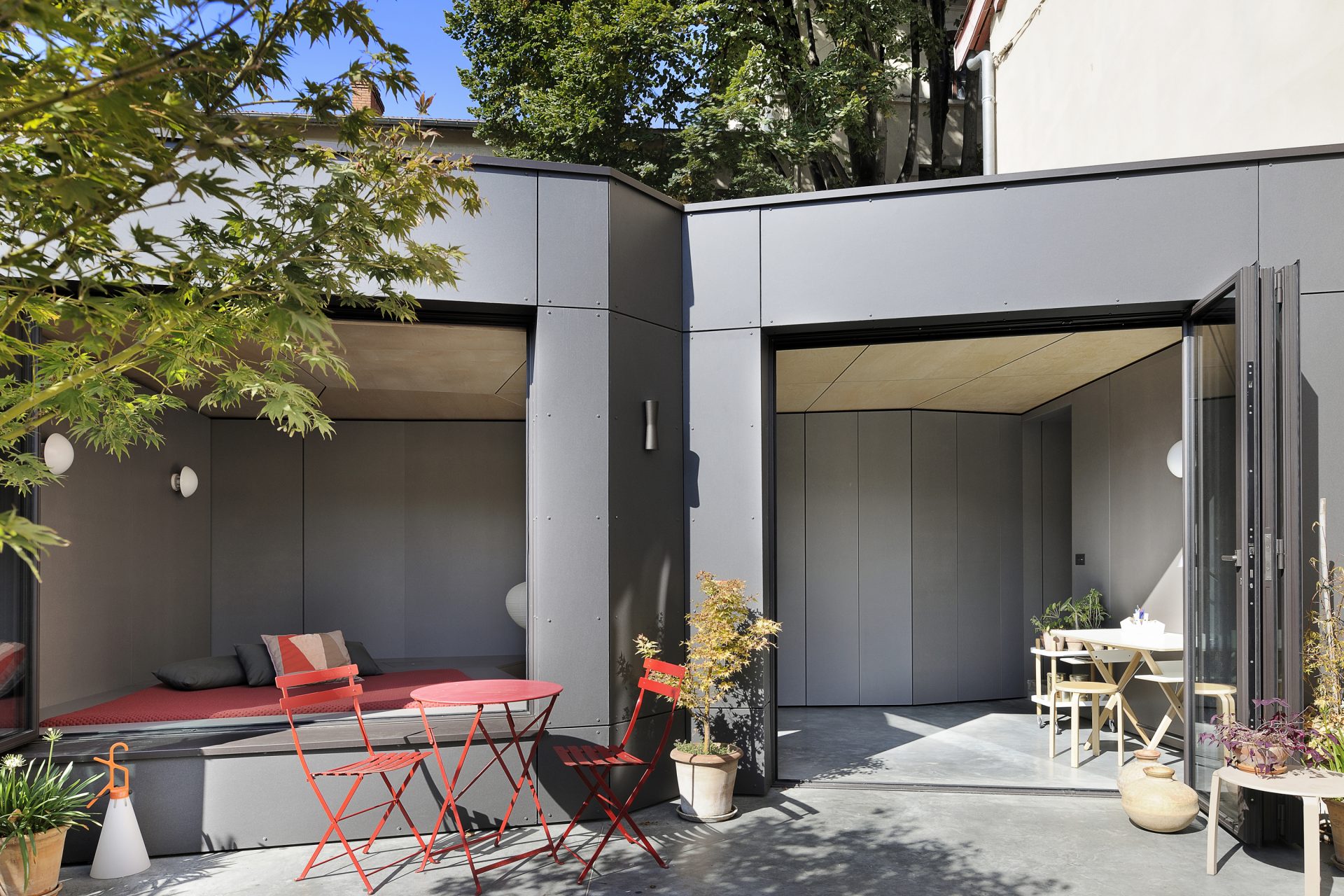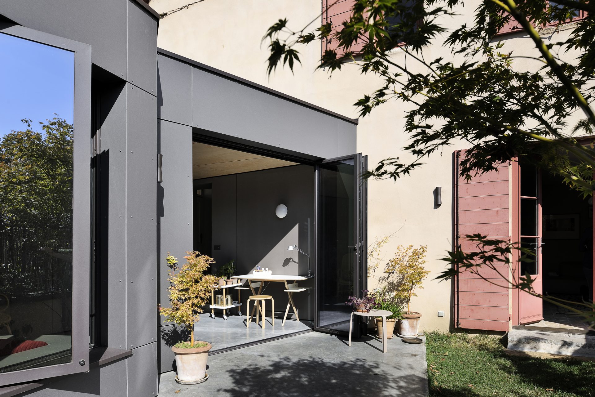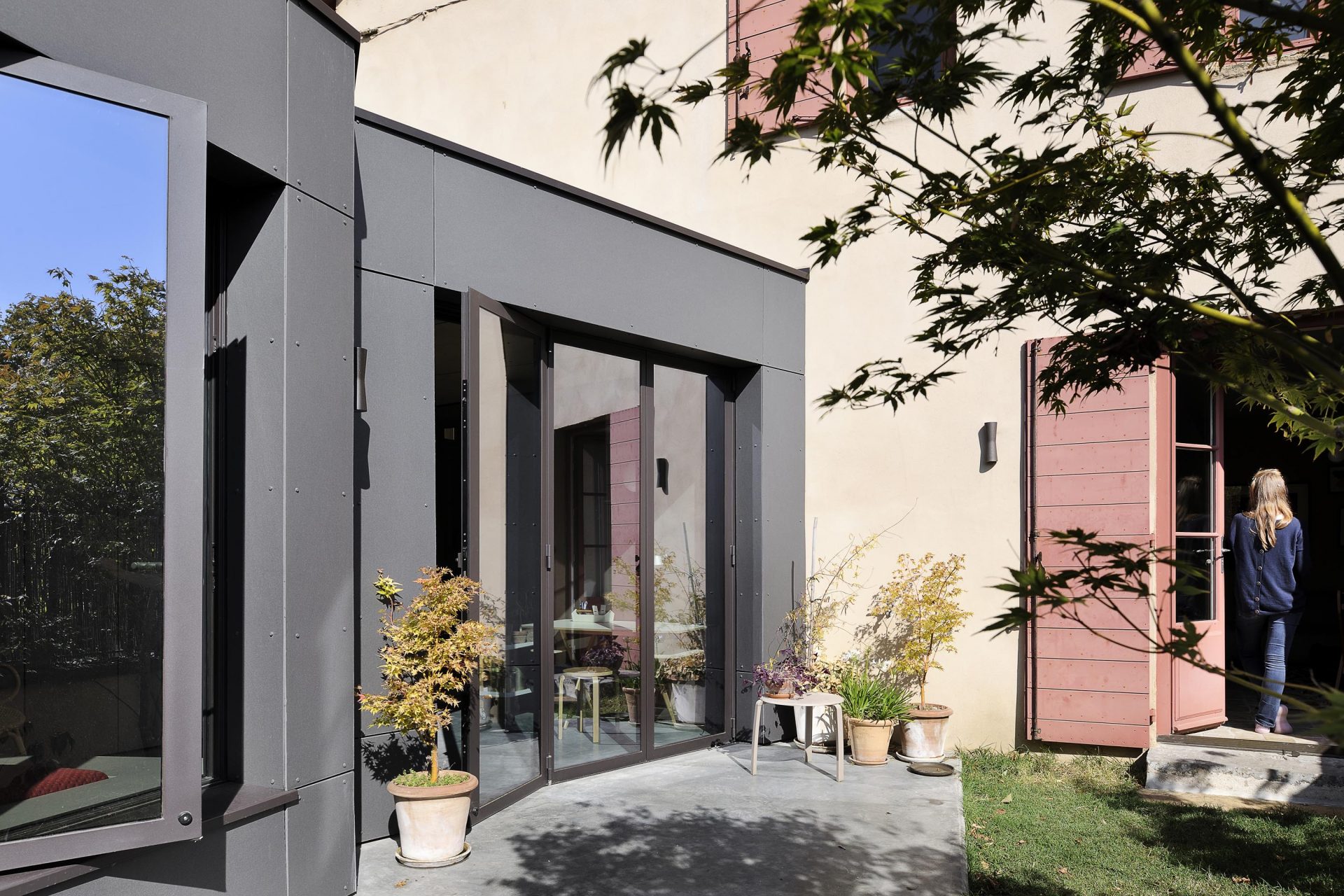 Le projet est une extension d’une maison de ville. Cette nouvelle pièce à vivre s’ouvre totalement sur le jardin et tourne la maison sur le sud pour profiter au maximum de la lumière naturelle. Les grandes baies accordéons prolongent l’espace sur le jardin.