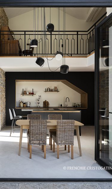 Le projet est une rénovation complète d’une maison ancienne toute en pierres. L'enjeu du projet était de donner de l'espace et de la lumière dans cette maison qui au départ était très sombres et une enfilade d'espaces exigus. Nous avons travaillé sur deux points essentiels pour le projet :