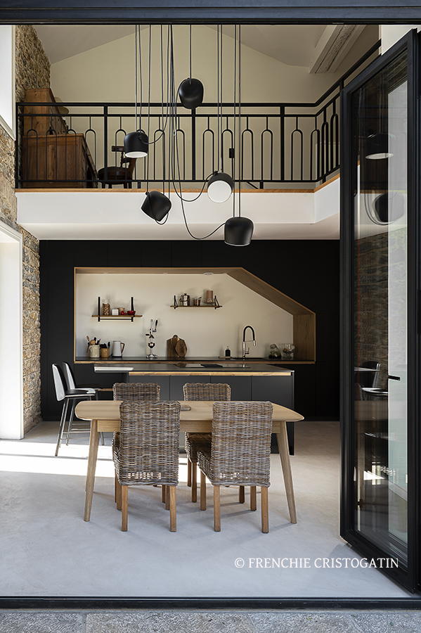 Le projet est une rénovation complète d’une maison ancienne toute en pierres. L'enjeu du projet était de donner de l'espace et de la lumière dans cette maison qui au départ était très sombres et une enfilade d'espaces exigus. Nous avons travaillé sur deux points essentiels pour le projet :