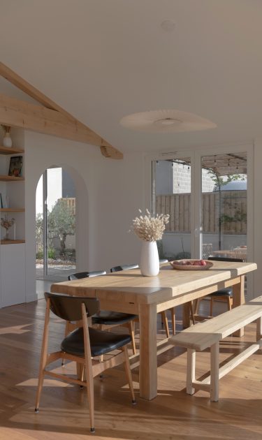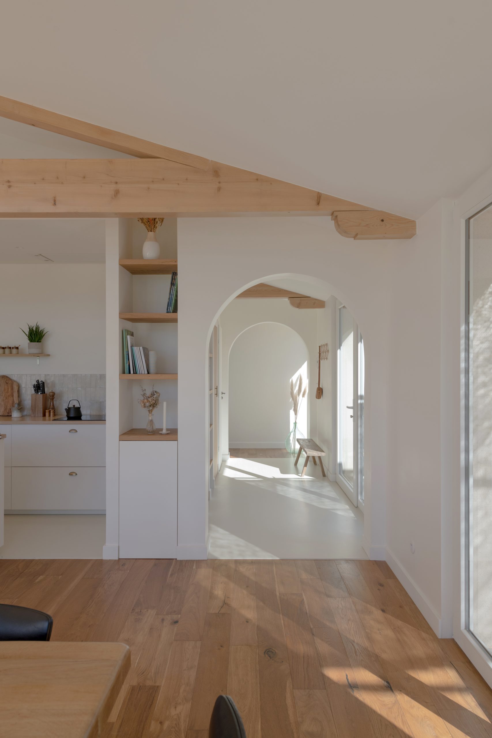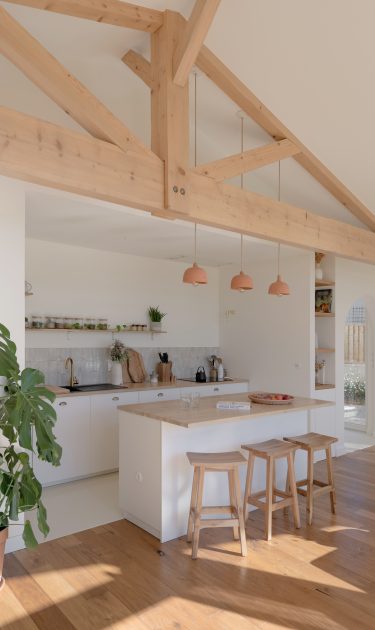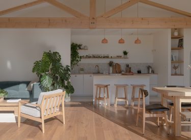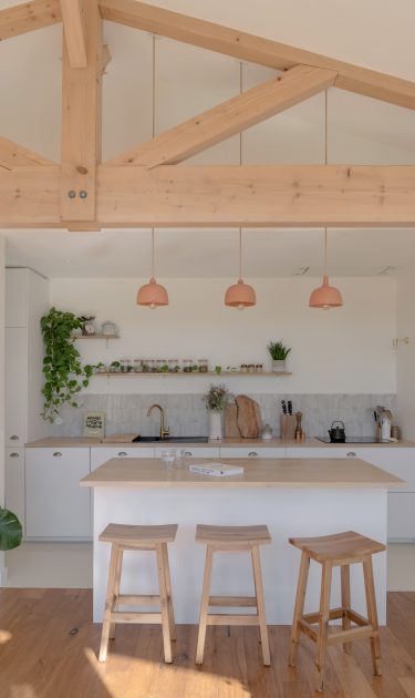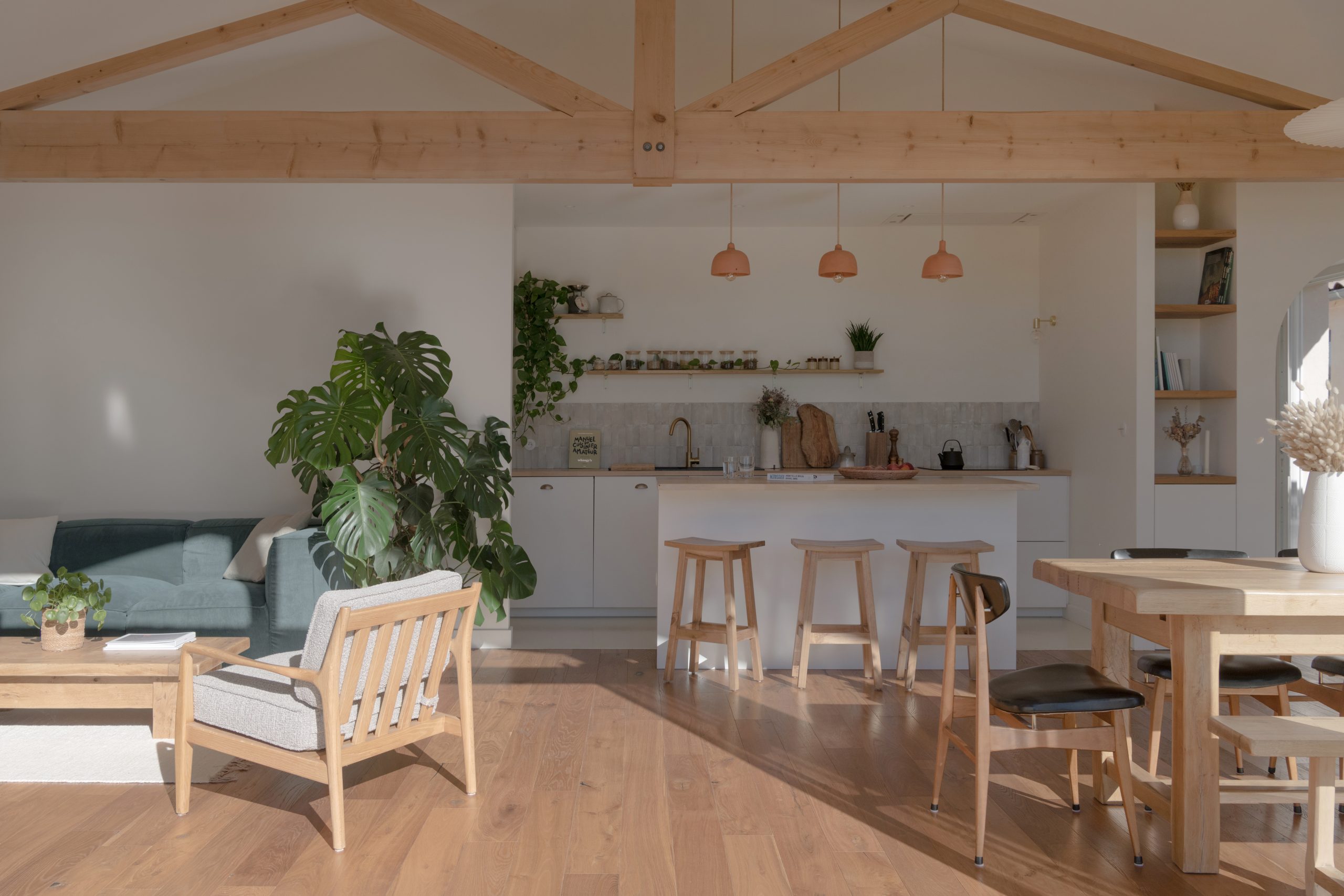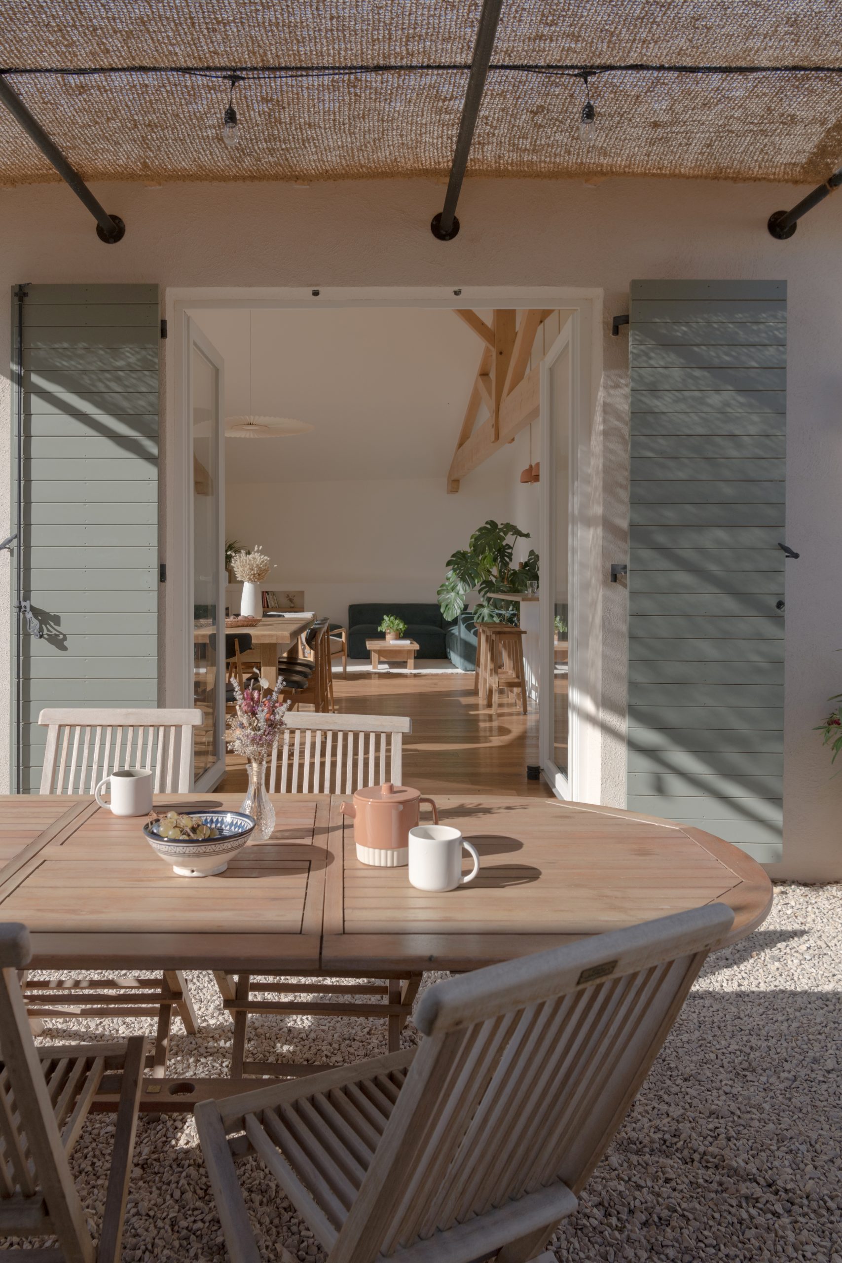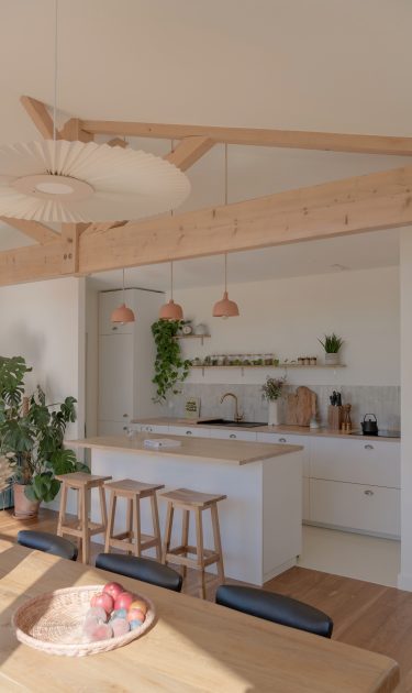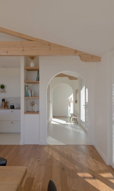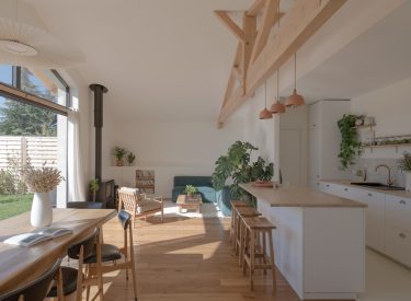 Construction d'une maison neuve de plain pied sur la commune de Chasselay dans l'ouest de Lyon. Cette maison avec un air de vacances se développe sur 130 m2 habitable et propose des espaces de vie largement ouverts sur le jardin et la vue. Le projet met en scène une belle charpente en bois.