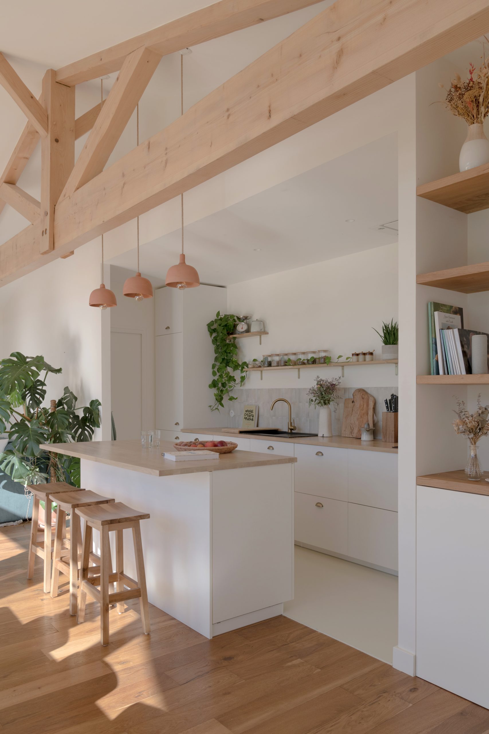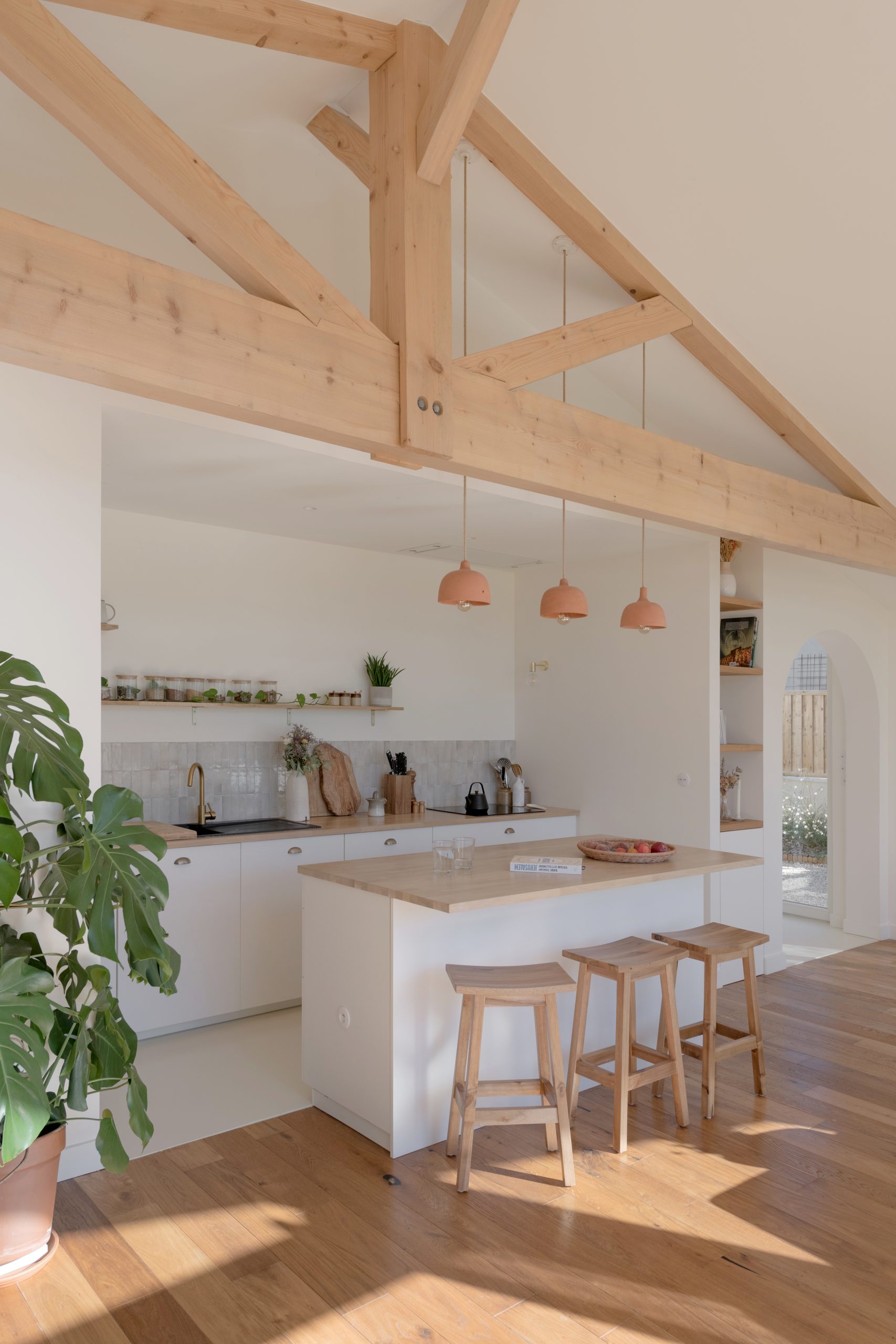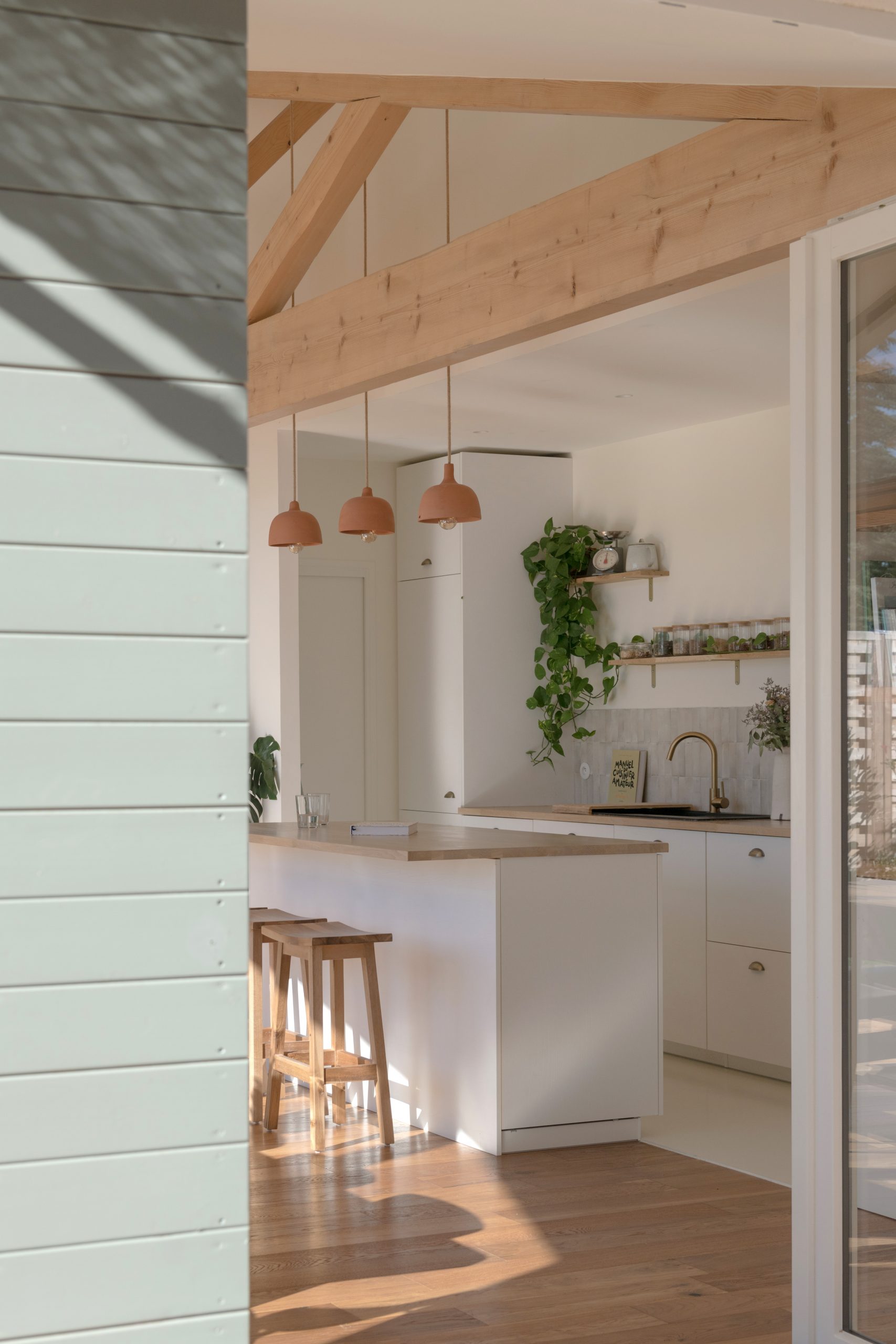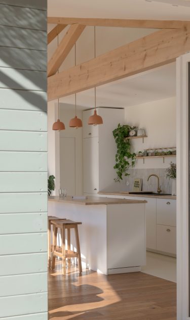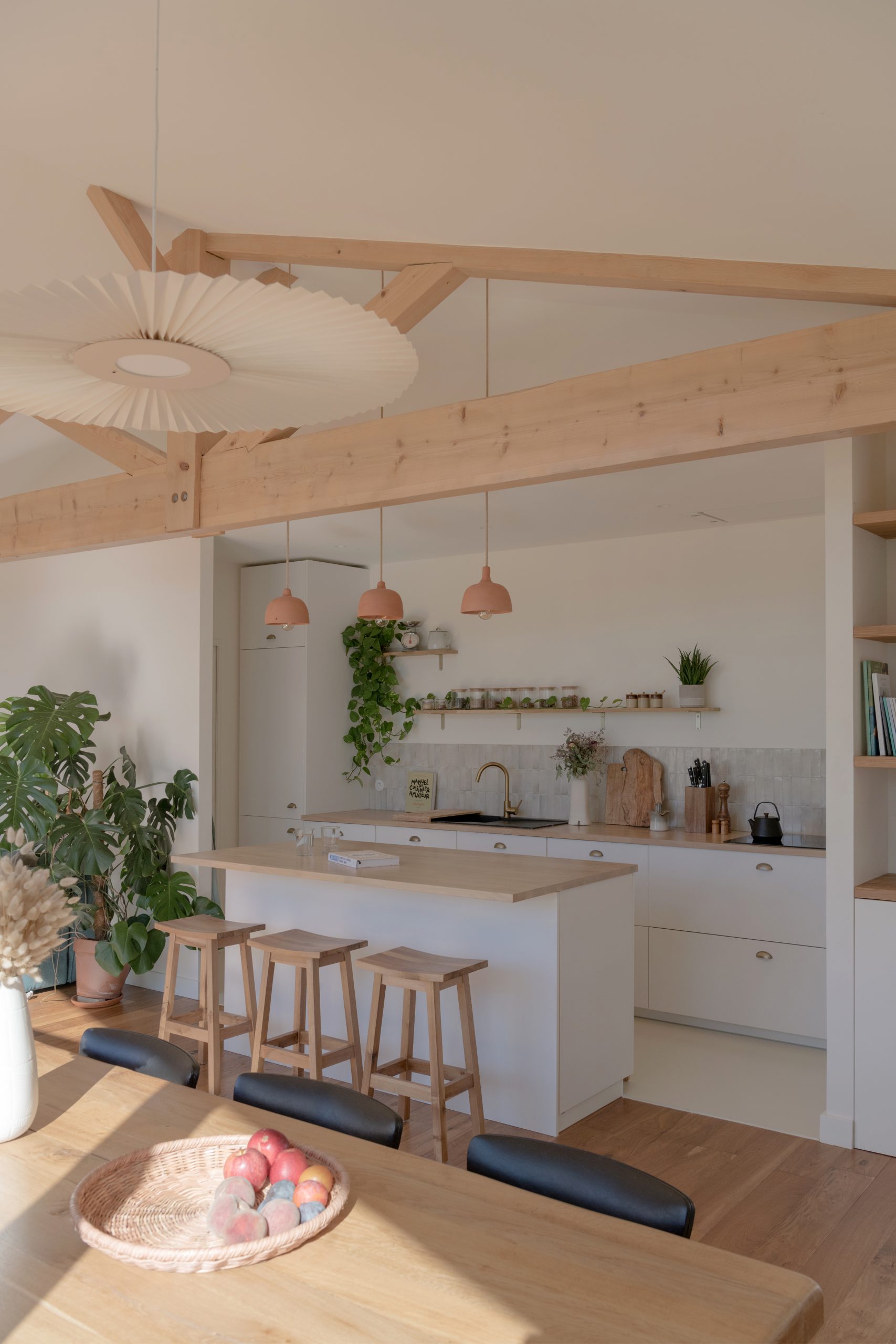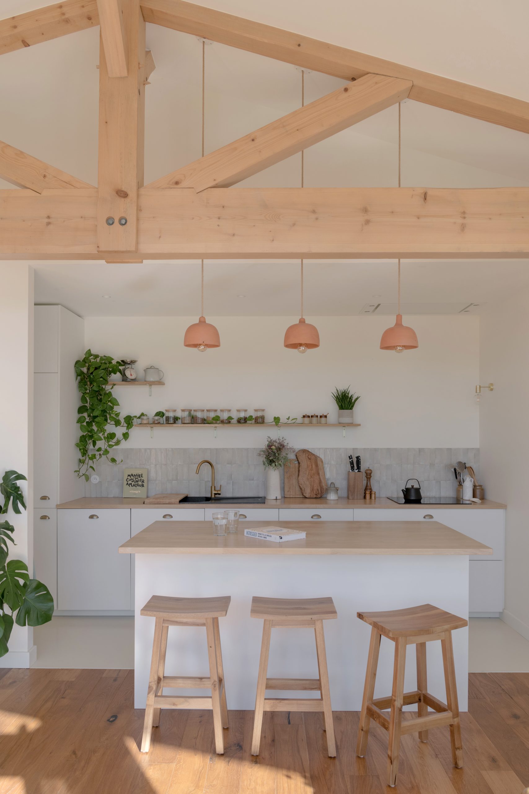 Construction d'une maison neuve de plain pied sur la commune de Chasselay dans l'ouest de Lyon. Cette maison avec un air de vacances se développe sur 130 m2 habitable et propose des espaces de vie largement ouverts sur le jardin et la vue. Le projet met en scène une belle charpente en bois.
