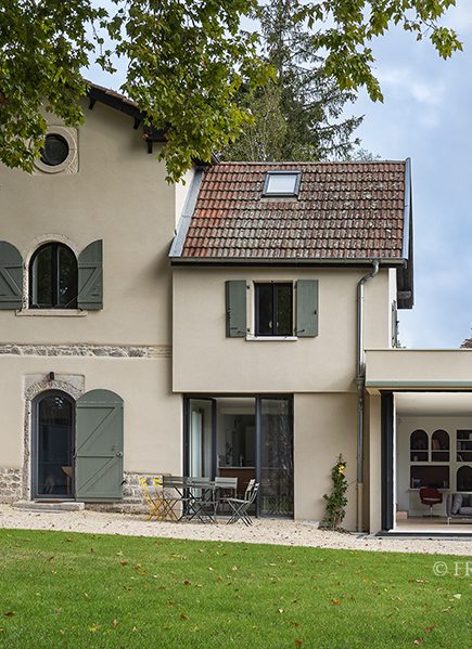 Le projet est une extension d’une maison individuelle. Cette nouvelle pièce à vivre s’ouvre sur le jardin grâce à sa baie d'angle en galandage . Cette dernière permet de profiter au maximum de la lumière naturelle.