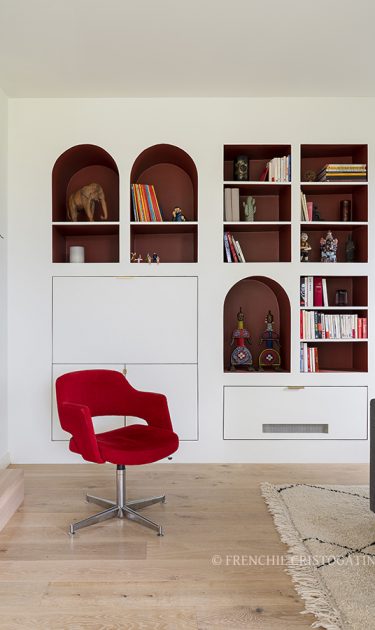Dans cette maison au départ exigue, cette extension permet de profiter au maximum des volume et de la vue sur jardin.