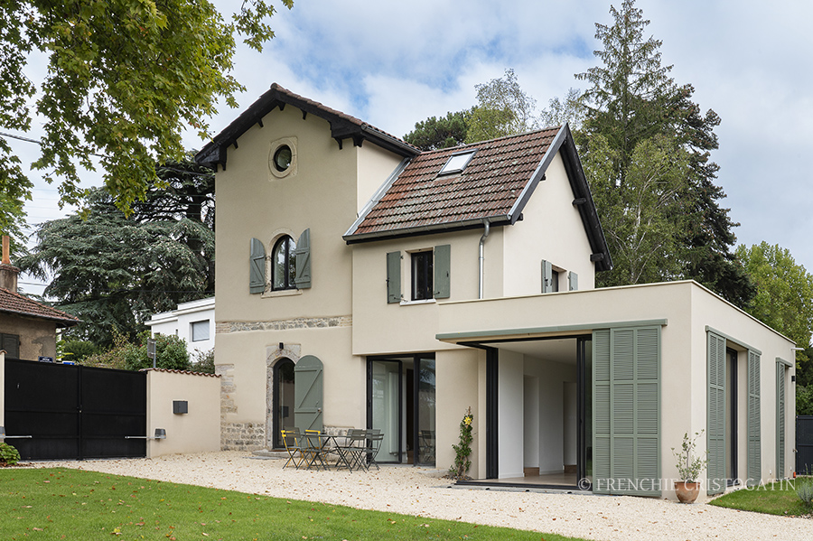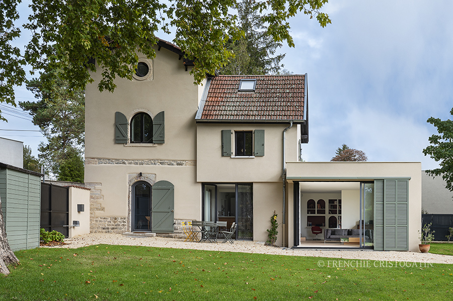 Le projet est une extension d’une maison individuelle. Cette nouvelle pièce à vivre s’ouvre sur le jardin grâce à sa baie d'angle en galandage . Cette dernière permet de profiter au maximum de la lumière naturelle.