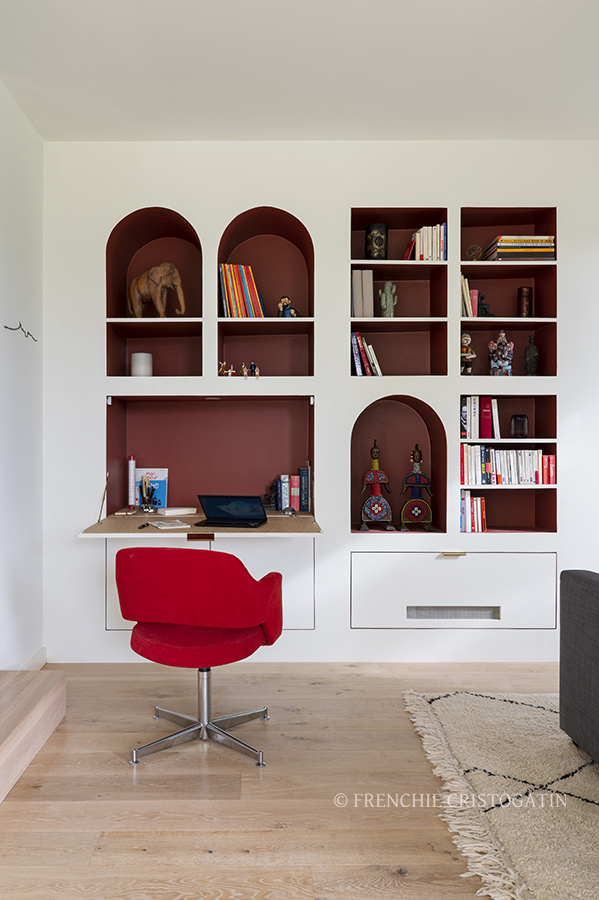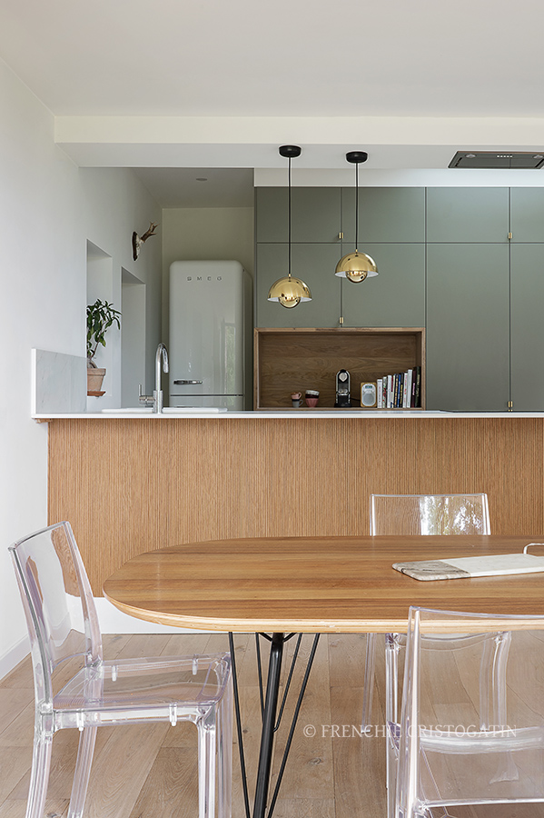 Dans cette maison au départ exigue, cette extension permet de profiter au maximum des volume et de la vue sur jardin.