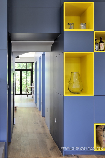 Le projet est une rénovation complète d’une maison des années 50. Le projet travaille autour d’un ilot central « la boite bleue » en coeur de la maison qui permet de créer un trait d’union entre les différents espaces de vie tout en accueillant l’ensemble des fonctions techniques de la maison. La mission s’est ensuite prolongée quelques années plus tard avec un réflexion sur l’ensemble du jardin et l’implantation de la piscine.